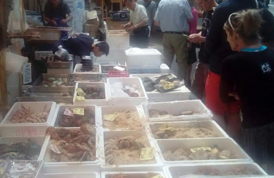 An Array of assorted fish and seafood arriving daily at Tsukiji from Global suppliers